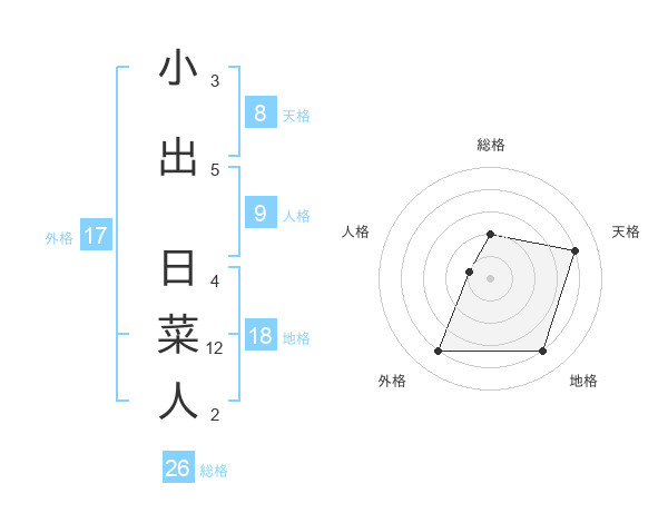 小出 日菜人さんの総格は26画の2点!