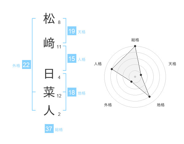 松﨑 日菜人さんの総格は37画の5点!