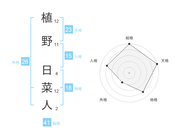 植野 日菜人さんを姓名の画数から五運を鑑定
