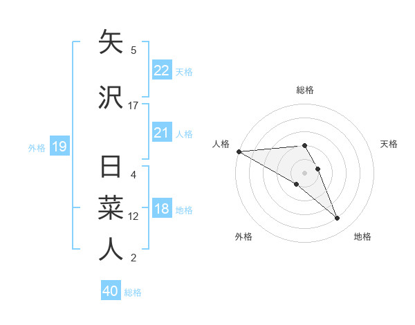 矢沢 日菜人さんの天格は22画の1点!