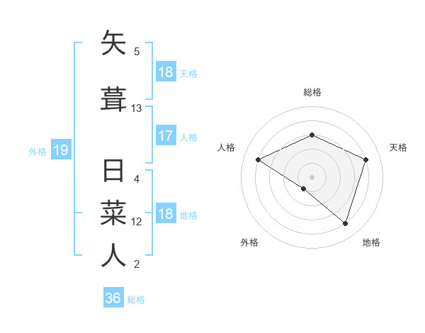 矢葺 日菜人さんを姓名の画数から五運を鑑定