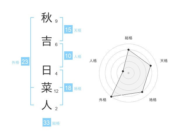 秋吉 日菜人さんを姓名の画数から五運を鑑定