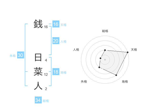 銭 日菜人さんの総格は34画の2点!