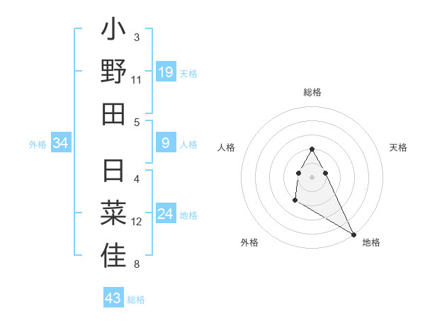 小野田 日菜佳さんを姓名の画数から五運を鑑定
