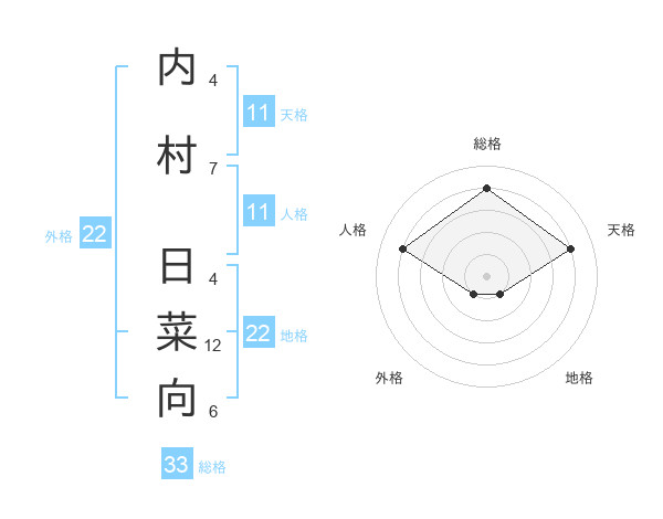 内村 日菜向さんを姓名の画数から五運を鑑定