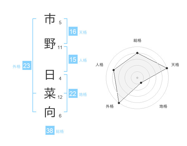 市野 日菜向さんを姓名の画数から五運を鑑定
