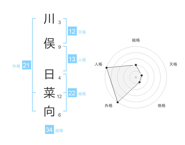 川俣 日菜向さんを姓名の画数から五運を鑑定