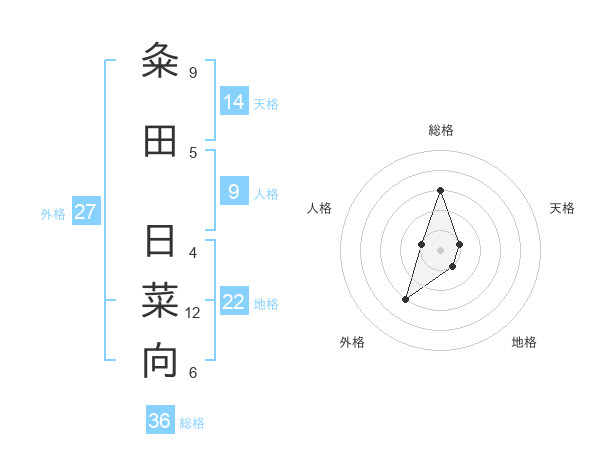 粂田 日菜向さんを姓名の画数から五運を鑑定