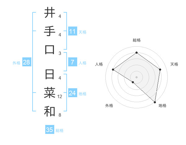 井手口 日菜和さんを姓名の画数から五運を鑑定