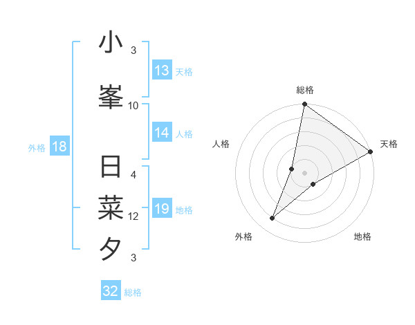 小峯 日菜夕さんを姓名の画数から五運を鑑定
