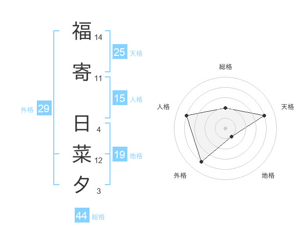 福寄 日菜夕さんを姓名の画数から五運を鑑定