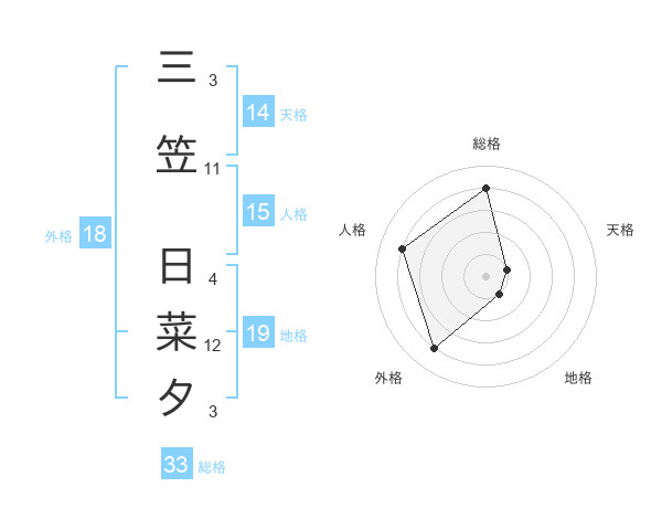 三笠 日菜夕さんを姓名の画数から五運を鑑定