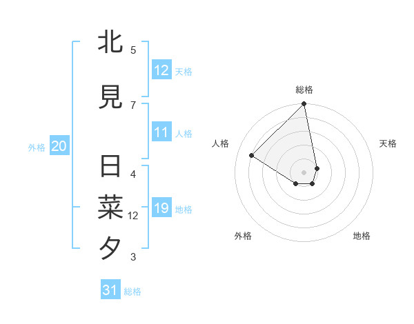 北見 日菜夕さんの総格は31画の5点!