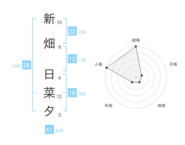 新畑 日菜夕さんを姓名の画数から五運を鑑定