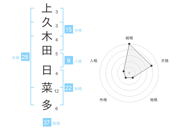 上久木田 日菜多さんを姓名の画数から五運を鑑定