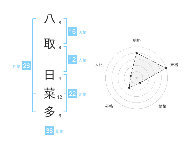 八取 日菜多さんの総格は38画の4点!