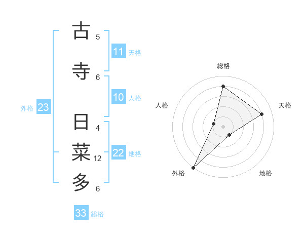 古寺 日菜多さんを姓名の画数から五運を鑑定