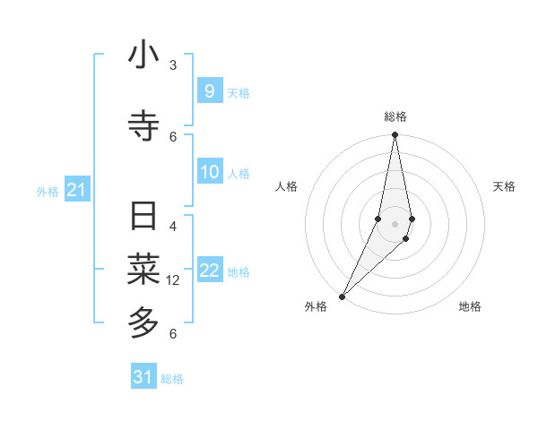小寺 日菜多さんの外格は21画の5点!
