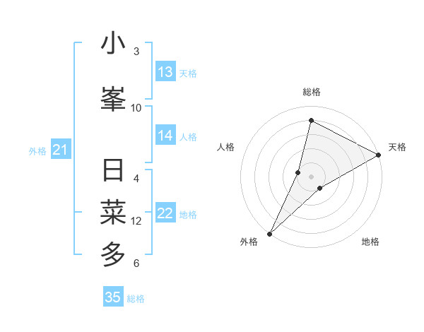 小峯 日菜多さんの天格は13画の5点!