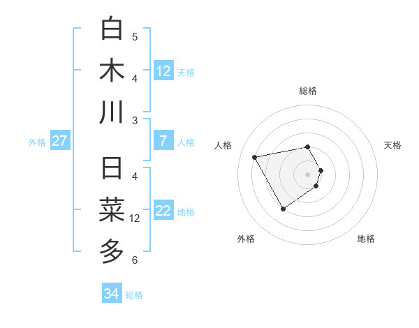 白木川 日菜多さんを姓名の画数から五運を鑑定