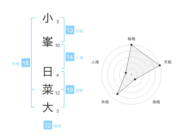 小峯 日菜大さんを姓名の画数から五運を鑑定