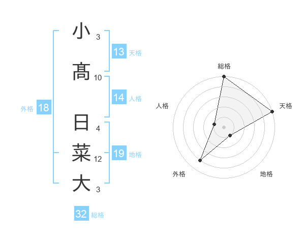 小髙 日菜大さんの総格は32画の5点!