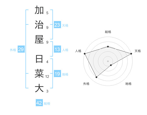 加治屋 日菜大さんを姓名の画数から五運を鑑定