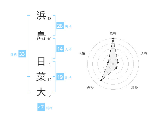 浜島 日菜大さんの総格は47画の5点!