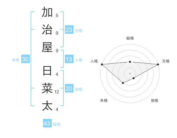 加治屋 日菜太さんの天格は23画の5点!