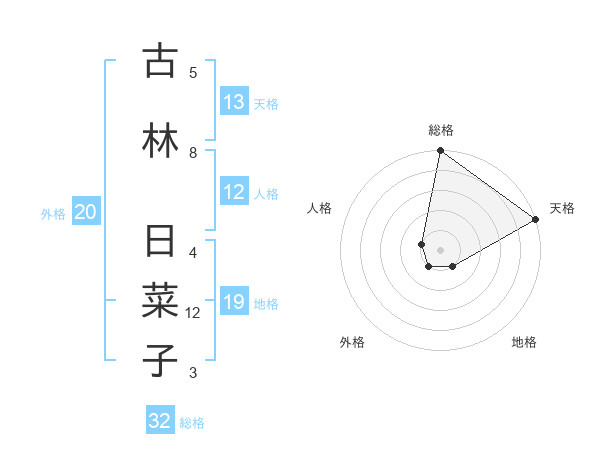 古林 日菜子さんの天格は13画の5点!
