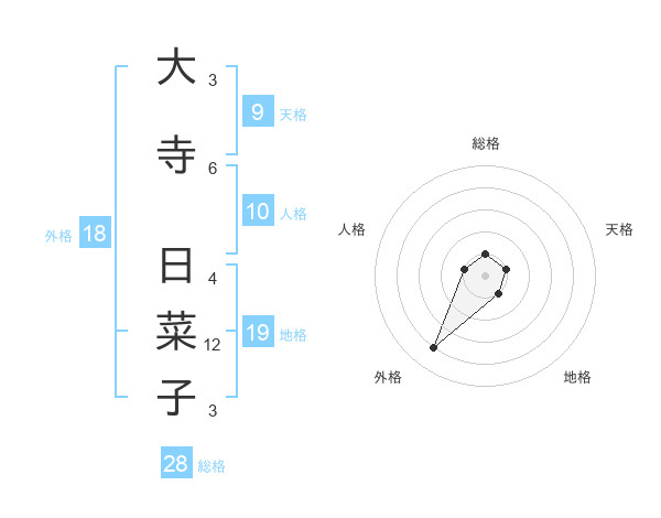 大寺 日菜子さんを姓名の画数から五運を鑑定