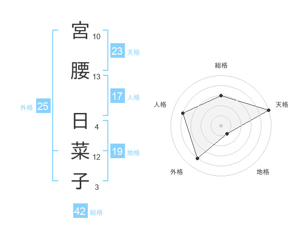 宮腰 日菜子さんを姓名の画数から五運を鑑定