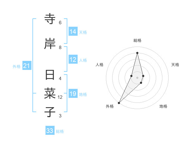 寺岸 日菜子さんの総格は33画の4点!