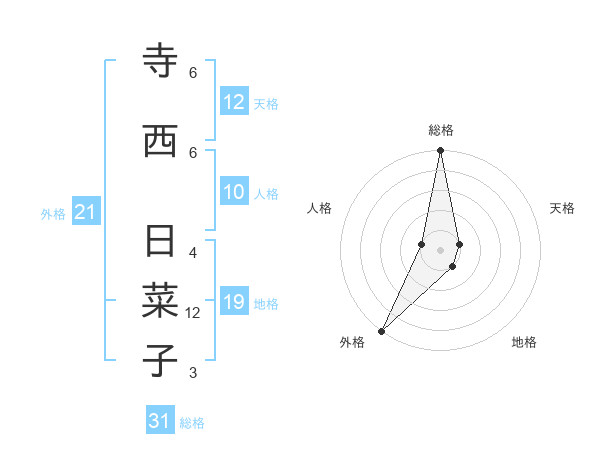 寺西 日菜子さんを姓名の画数から五運を鑑定