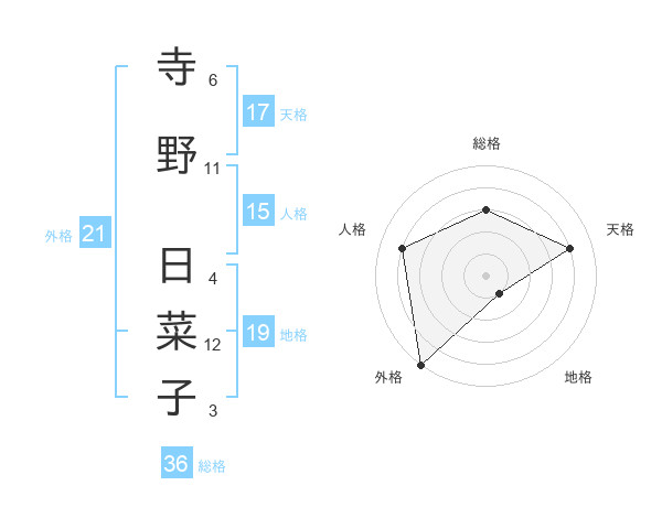 寺野 日菜子さんを姓名の画数から五運を鑑定