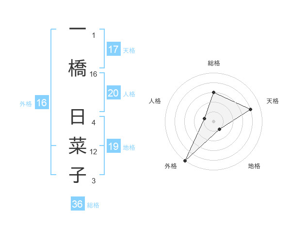 一橋 日菜子さんの外格は16画の5点!
