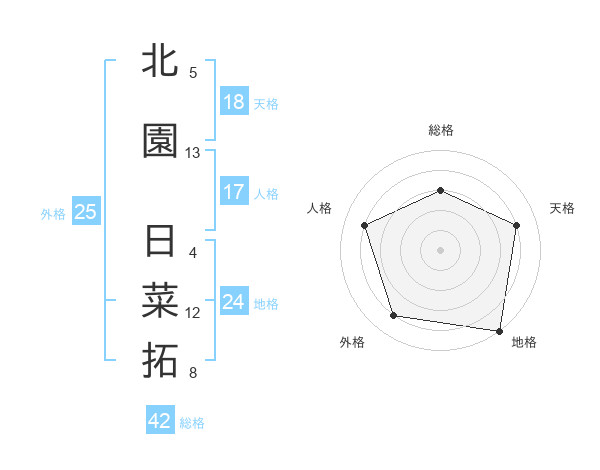 北園 日菜拓さんを姓名の画数から五運を鑑定