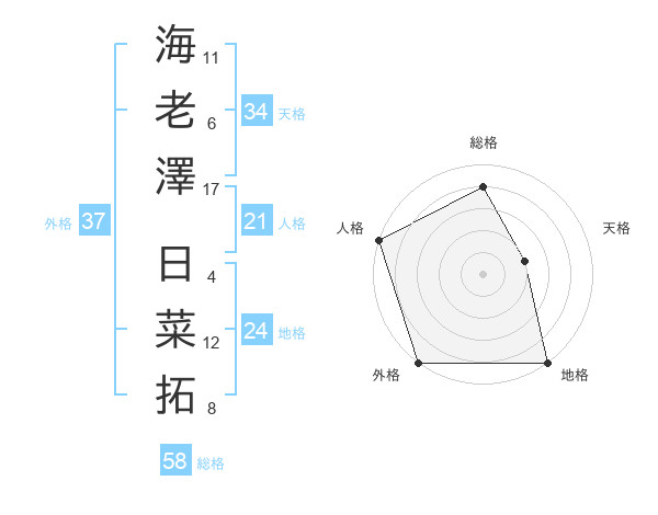 海老澤 日菜拓さんを姓名の画数から五運を鑑定