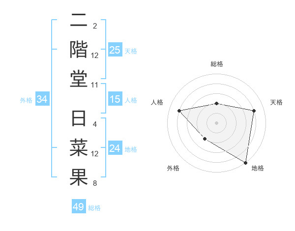 二階堂 日菜果さんの天格は25画の4点!