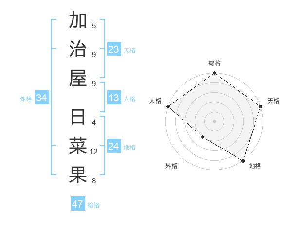 加治屋 日菜果さんを姓名の画数から五運を鑑定