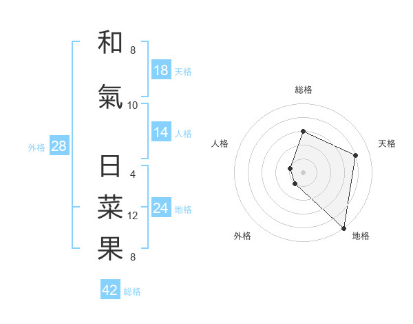 和氣 日菜果さんを姓名の画数から五運を鑑定