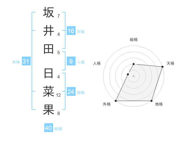 坂井田 日菜果さんを姓名の画数から五運を鑑定