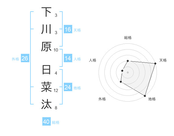 下川原 日菜汰さんを姓名の画数から五運を鑑定
