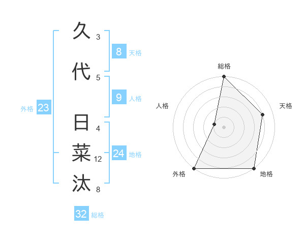 久代 日菜汰さんの総格は32画の5点!