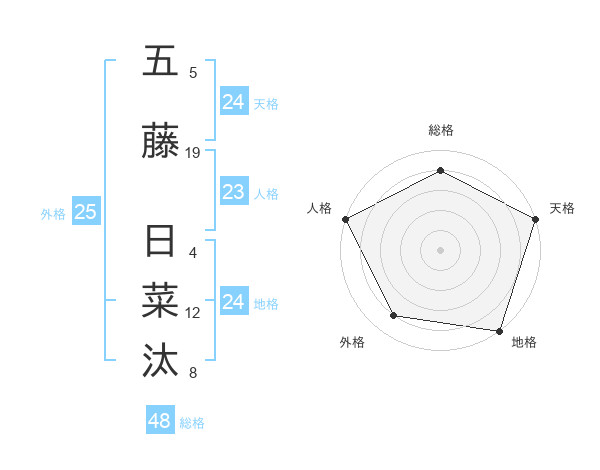 五藤 日菜汰さんの天格は24画の5点!
