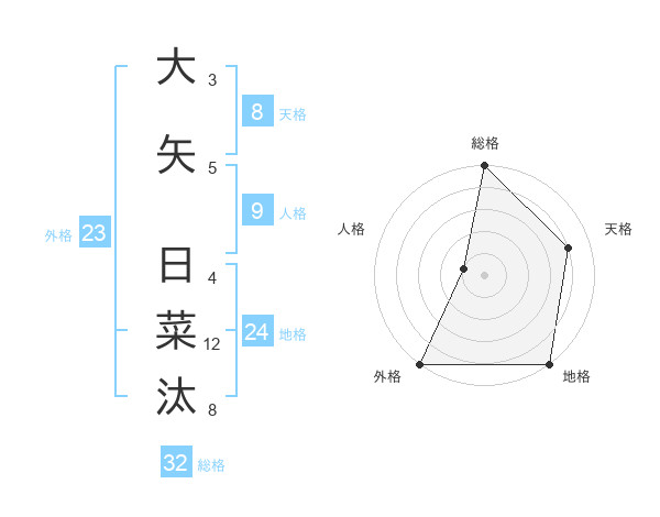 大矢 日菜汰さんを姓名の画数から五運を鑑定