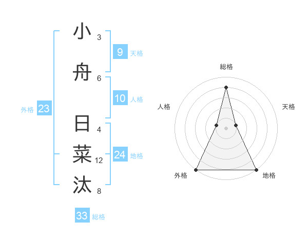 小舟 日菜汰さんの総格は33画の4点!