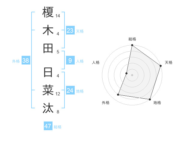 榎木田 日菜汰さんの総格は47画の5点!