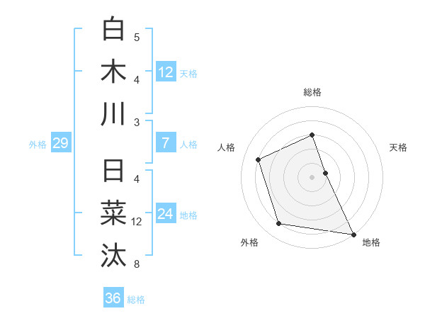 白木川 日菜汰さんの地格は24画の5点!
