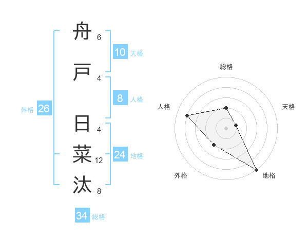 舟戸 日菜汰さんの総格は34画の2点!